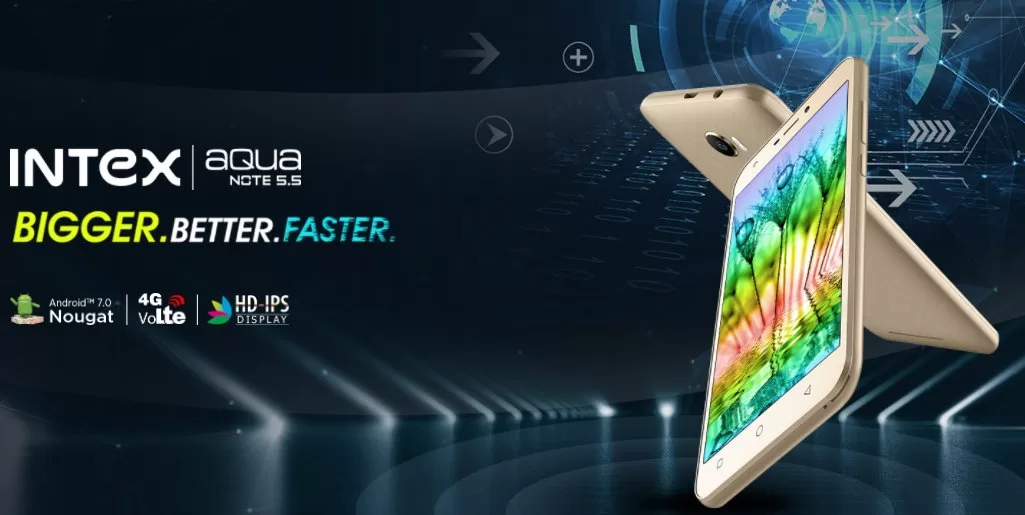 Indian Smartphone brand Intex has launched a new 4G VoLTE smartphone Intex Aqua Note 5.5 Priced at Rs. 6,199 (MRP) in India. Aqua Note 5.5 is available to buy via Amazon India at a discounted price of Rs. 5,799. Intex Aqua Note 5.5 biggest feature are its 2800mAh battery, front flash module, and the presence of Android Nougat. It will be available in a Champagne Gold color variant.