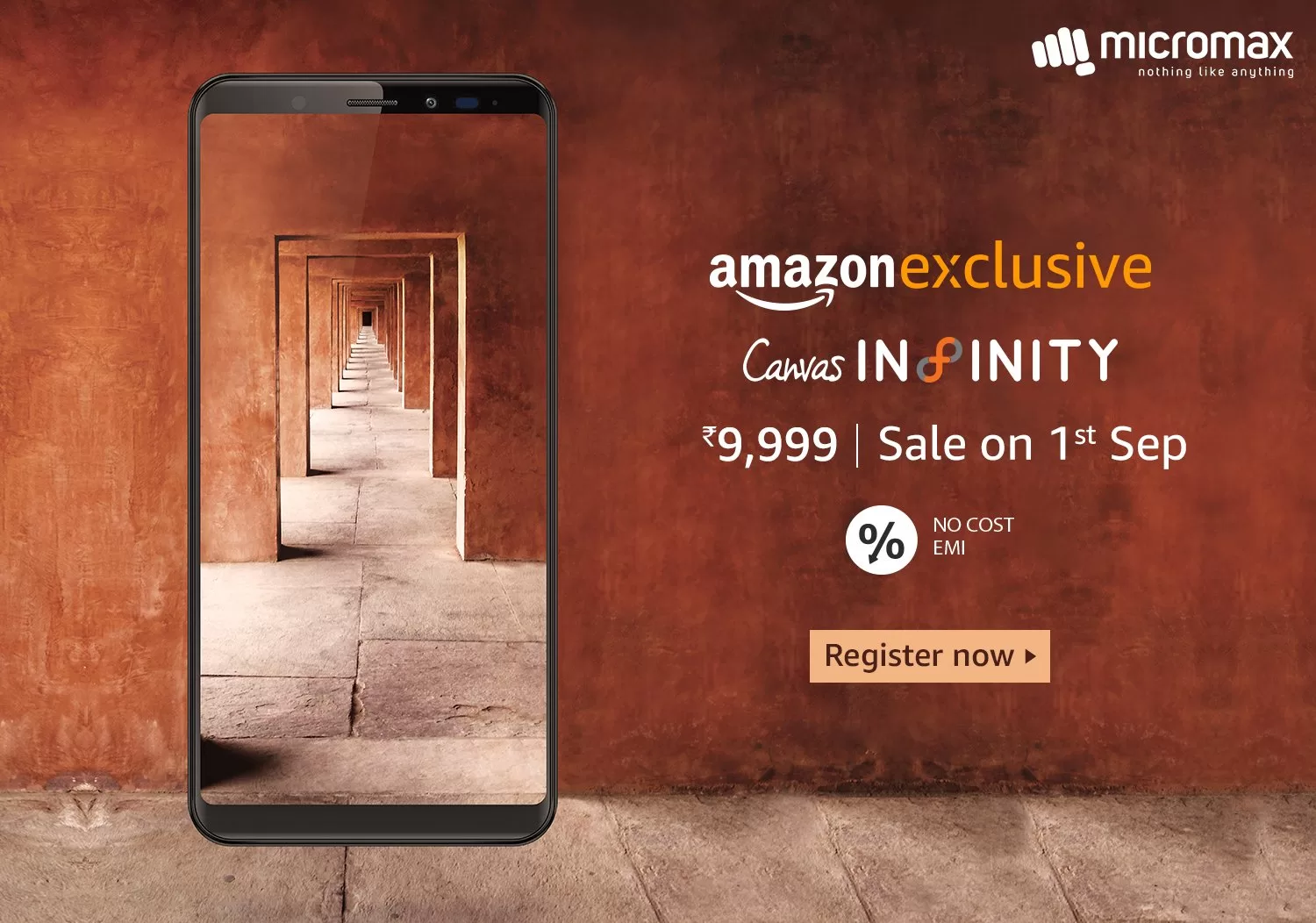 The Micromax Canvas Infinity Smartphone price in India is Rs. 9,999, and to start with, the smartphone is an Amazon India exclusive. Registrations for the first sale on September 1 have already begun. The first sale will be held at 12 pm IST.