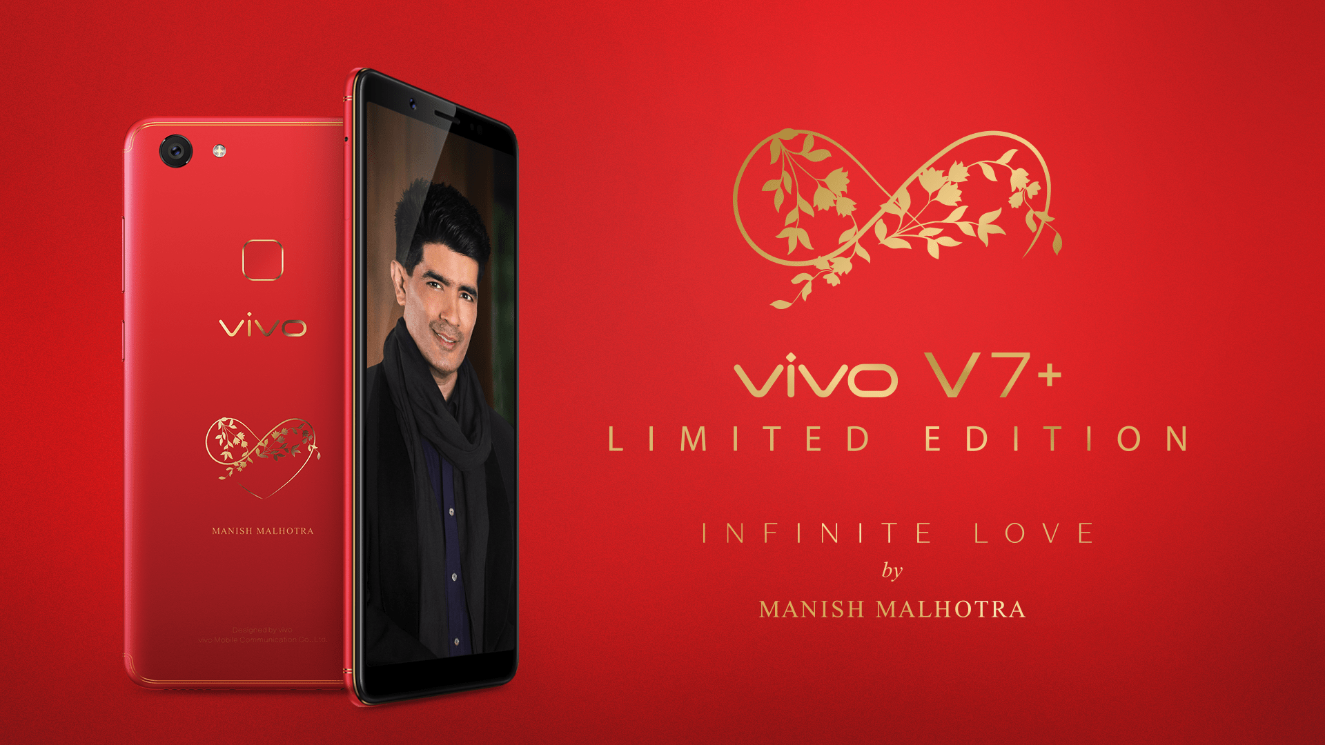 Chinese smartphone maker Vivo has collaborated with fashion designer Manish Malhotra launched “Infinite Red” Vivo V7+ limited edition smartphone targeting millennials in India. The selfie-focused flagship smartphone with 24MP front shooter features a heart-shaped motif at the back. Priced at Rs 22,990, the device will be available in all offline stores across India and on Amazon.