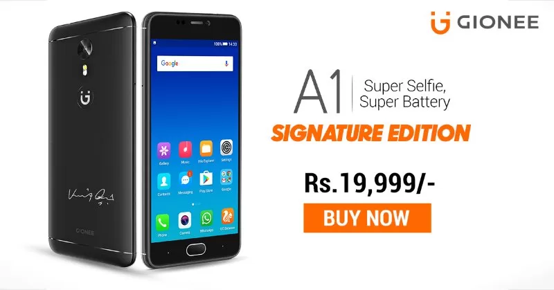 Indian Cricket Team Captain Virat Kohli Signature Edition Gionee A1 smartphone in India estimated at Rs. 19,999. Special Edition Gionee A1 Smartphone is presently available at Amazon India.