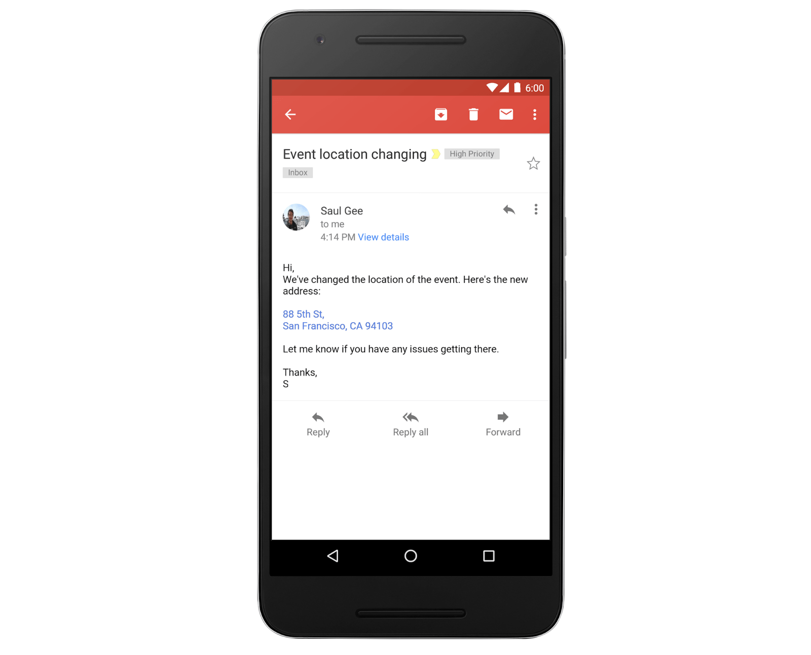 Google has now added an ability to Gmail that will allow the service to automatically recognize addresses, phone numbers, and email addresses in email and convert them into hyperlinks – a feature that is present in most other email clients. This will now be available on Gmail and Inbox by Gmail for iOS, Android, and Web for all users within the next three days.