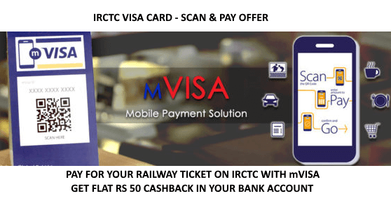 IRCTC-mVisa Promotion Offer : Get Rs. 50 Cashback on Online Tickets Booking Till Sept. 4